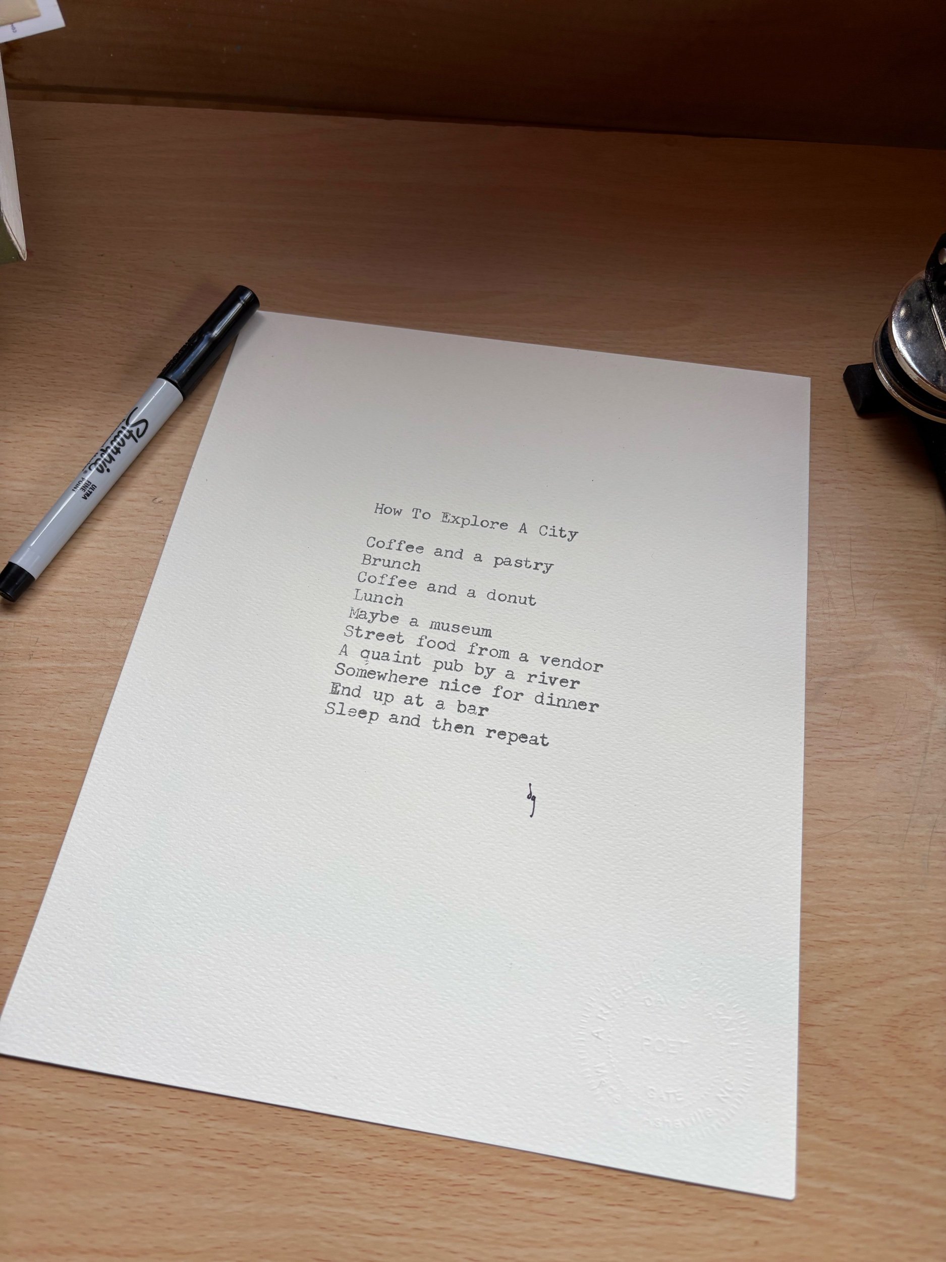 printed from hand-typed version onto 8x10” sturdy recycled card stock